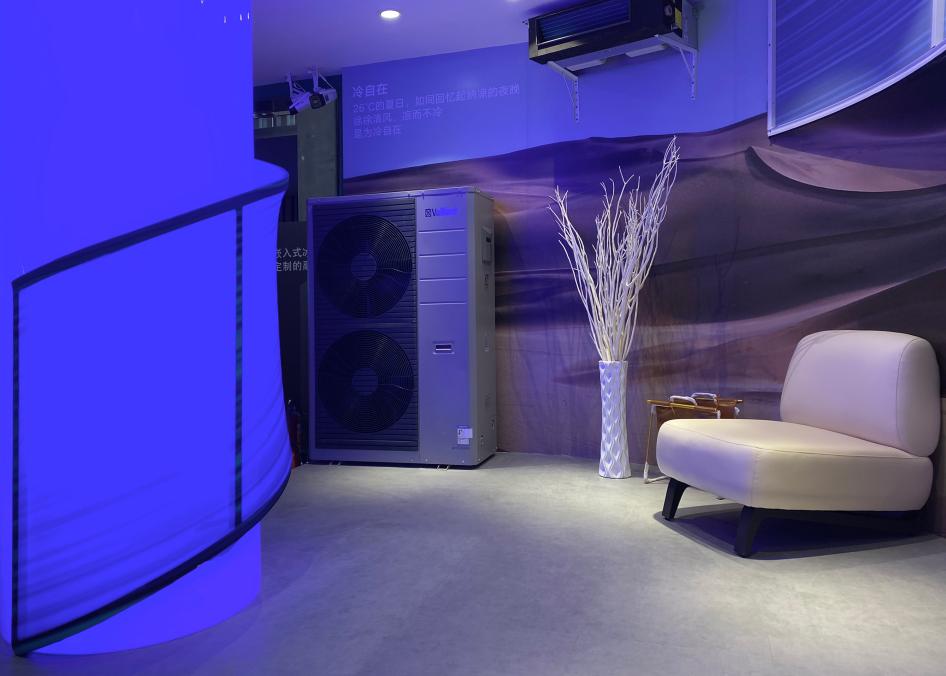在冷自在体验区,威能展示了以空气源热泵为代表的可再生能源解决方案。通过持续研发低排放、高能效、可持续、向未来的系统解决方案,为消费者提供身心自在的使用感受。
