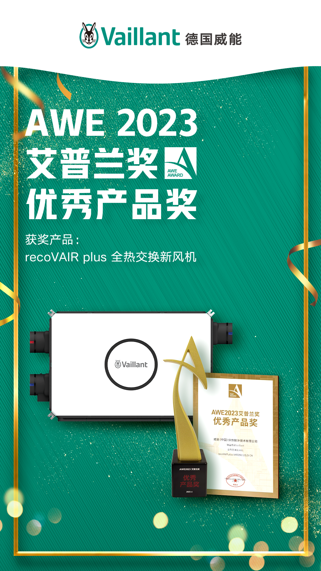 recoVAIR plus全热交换新风机荣获AWE2023艾普兰奖优秀产品奖