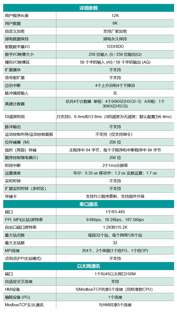 支持PUT/GET向导、支持modbusTCP协议和开放式用户通信(OUC)。