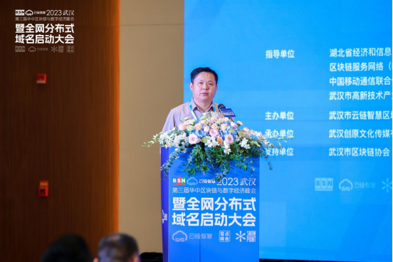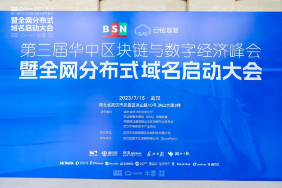 7月16日,主题为“全网分布式域名启动会”的第三届华中区块链与数字经济峰会在武汉洪山大厦举办。本次峰会由区块链服务网络(BSN)发展联盟、中国移动通信联合会区块链专业委员会、武汉市高新技术产业协会指导,武汉市云链智慧区块链科技有限公司主办。会议邀请了区块链服务网络(BSN)发展联盟代表、权威专家、头部企业代表等嘉宾展开交流,共同探讨全网分布式域名的发展和应用,以及区块链技术在其中的创新和融合,展望全网分布式域名在促进技术创新与产业变革、推动数字经济发展的重要作用。