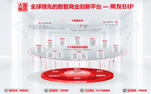 用友BIP拥有8项首创或领先的平台技术、8项领先的应用架构,提供覆盖财务、人力、供应链等十大核心领域的564个创新服务,沉淀了近100个细分行业领先企业业务与管理数智化创新实践,并建立起包括3088家ISV伙伴在内的大规模生态,使能企业全面数智商业创新。